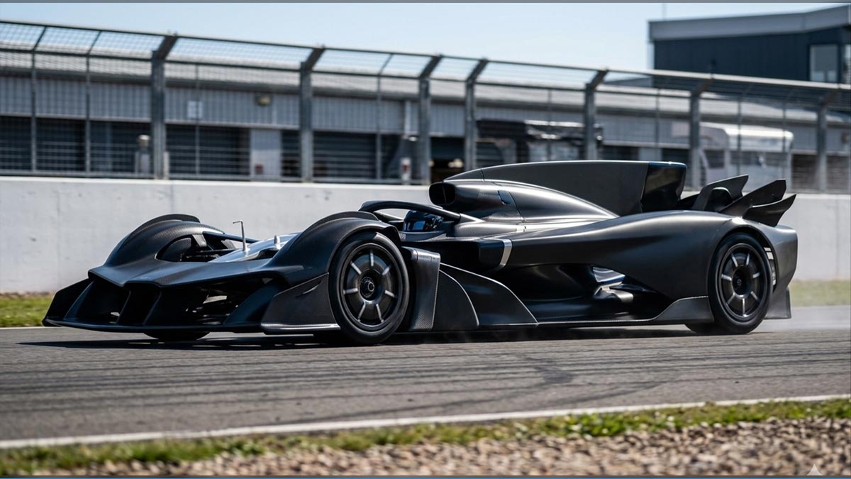 O design apresenta um cockpit aberto, protegido pelo sistema Halo, e suspensão dianteira pushrod, típica de monopostos. Ao mesmo tempo, a aerodinâmica traseira e as rodas carenadas remetem ao Valkyrie da categoria Hypercar do WEC. Sob a capô, o som característico de um motor V12 aliado a um sistema híbrido.