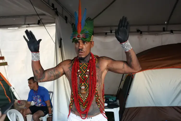 Tapurumã Pataxó, artista da Aldeia Barra Velha, em Porto Seguro (BA), alertou durante o Acampamento Terra Livre em Brasília (DF) sobre o cenário preocupante: “Os fazendeiros estão acabando não só com o nosso território, mas com o Brasil todo”. Ele recorda que, na infância, a abundância de araras era muito maior do que a atual.